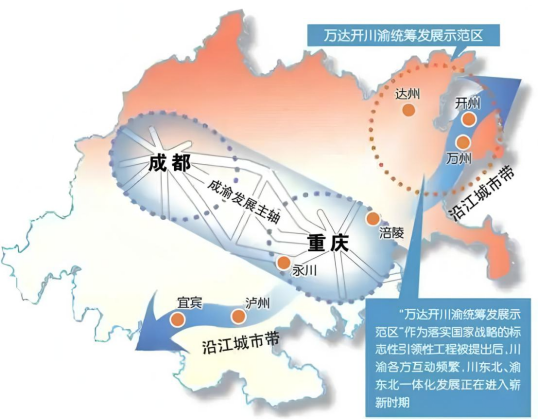 成渝地区双城经济圈万达开川渝统筹发展区位示意图