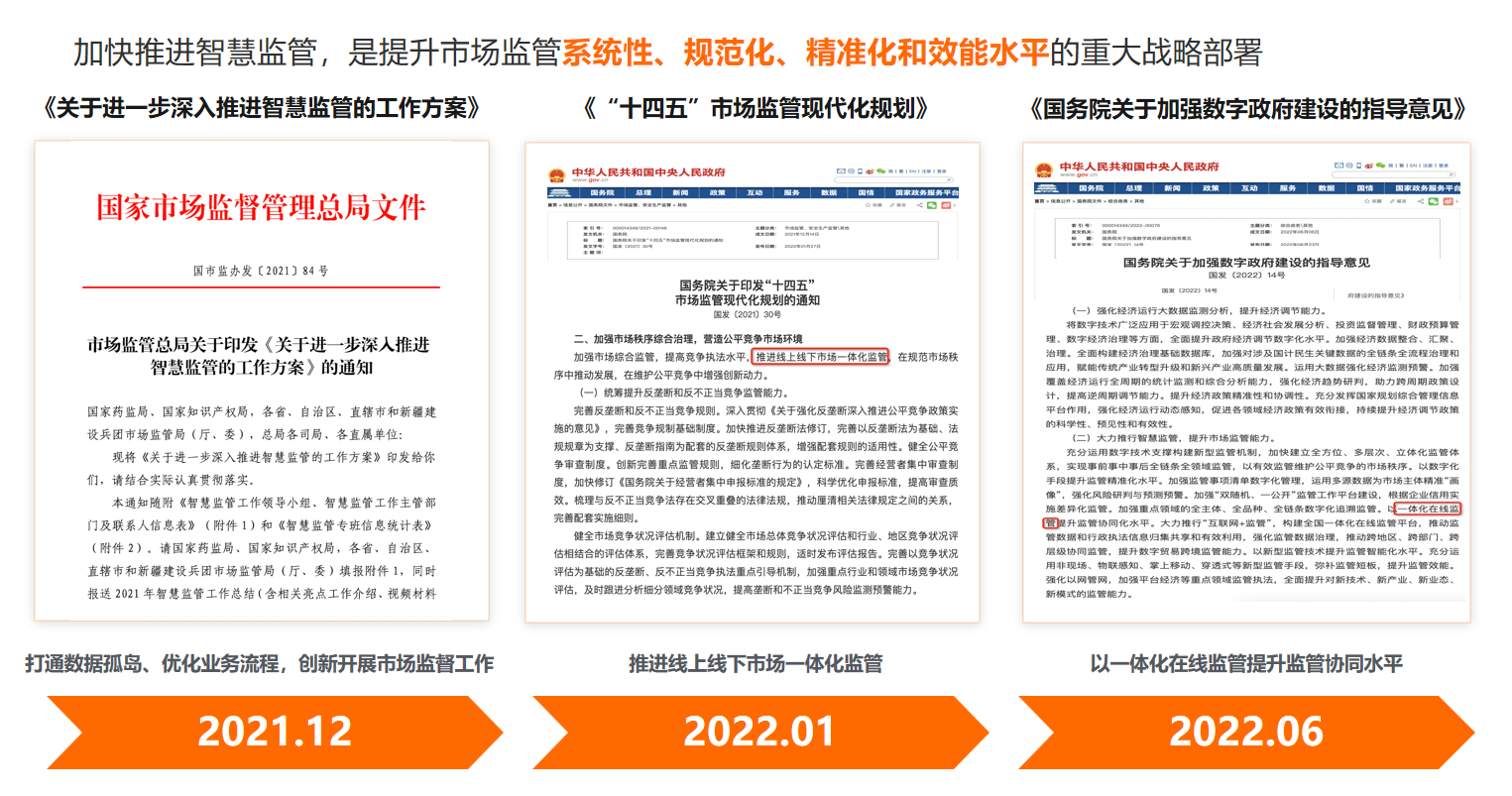 1、国家政策提出一体化智慧监管要求: